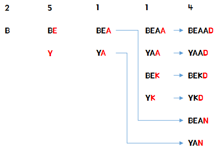 이전숫자 1과 합쳤을 때 14가 되고 26 이하이기 때문에 두 번째 전 251 상태의 방법이 추가됩니다.